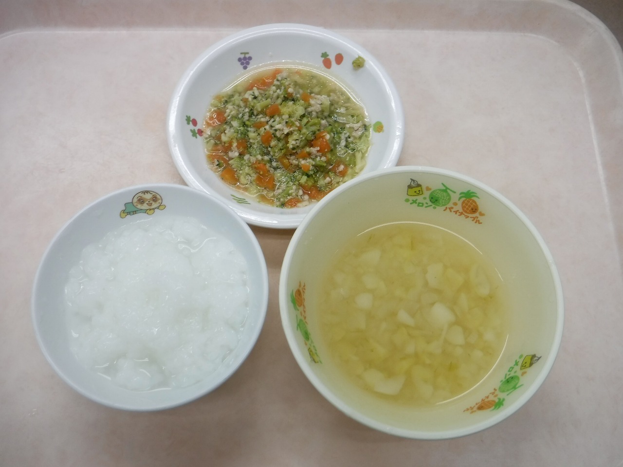 離乳食25倍がゆ人参とブロッコリーのそぼろ煮さつま芋スープ
