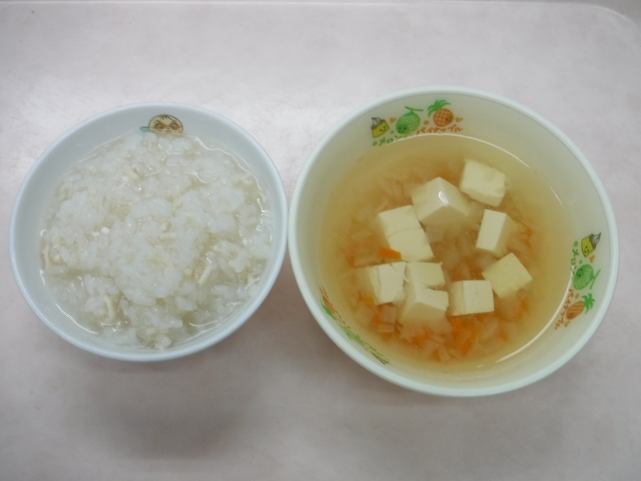 離乳食 そぼろ5倍がゆ 豆腐スープ